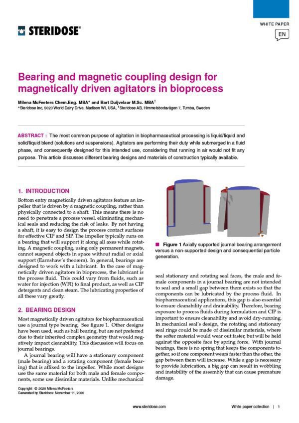 Bearing and magnetic coupling design for magnetically driven agitators in bioprocess