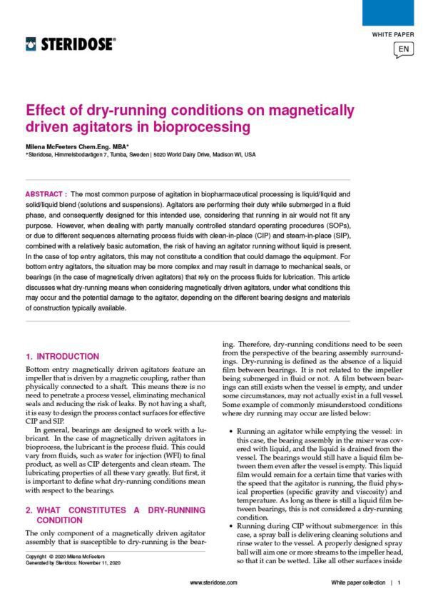 Effect of dry-running conditions on magnetically driven agitators in bioprocessing