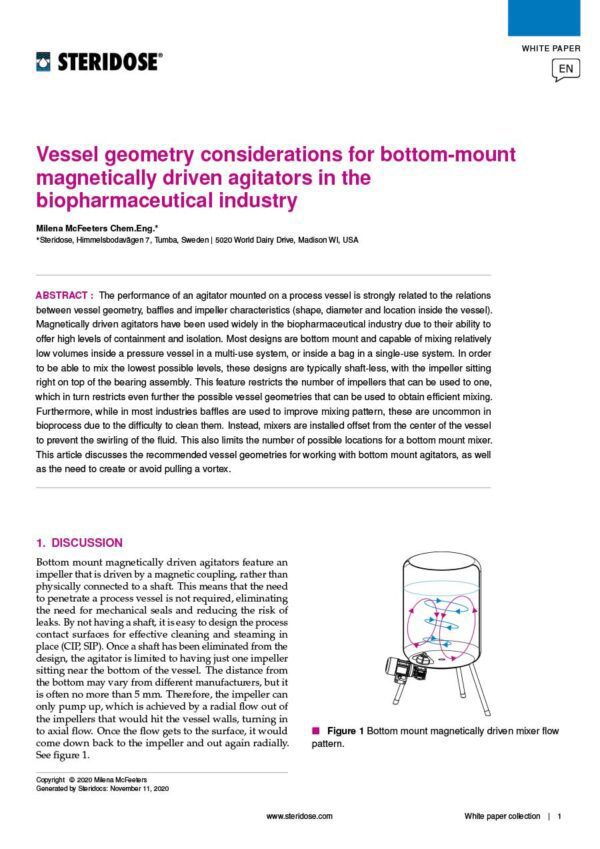 Vessel geometry considerations for bottom-mount magnetically driven agitators in the biopharmaceutical industry